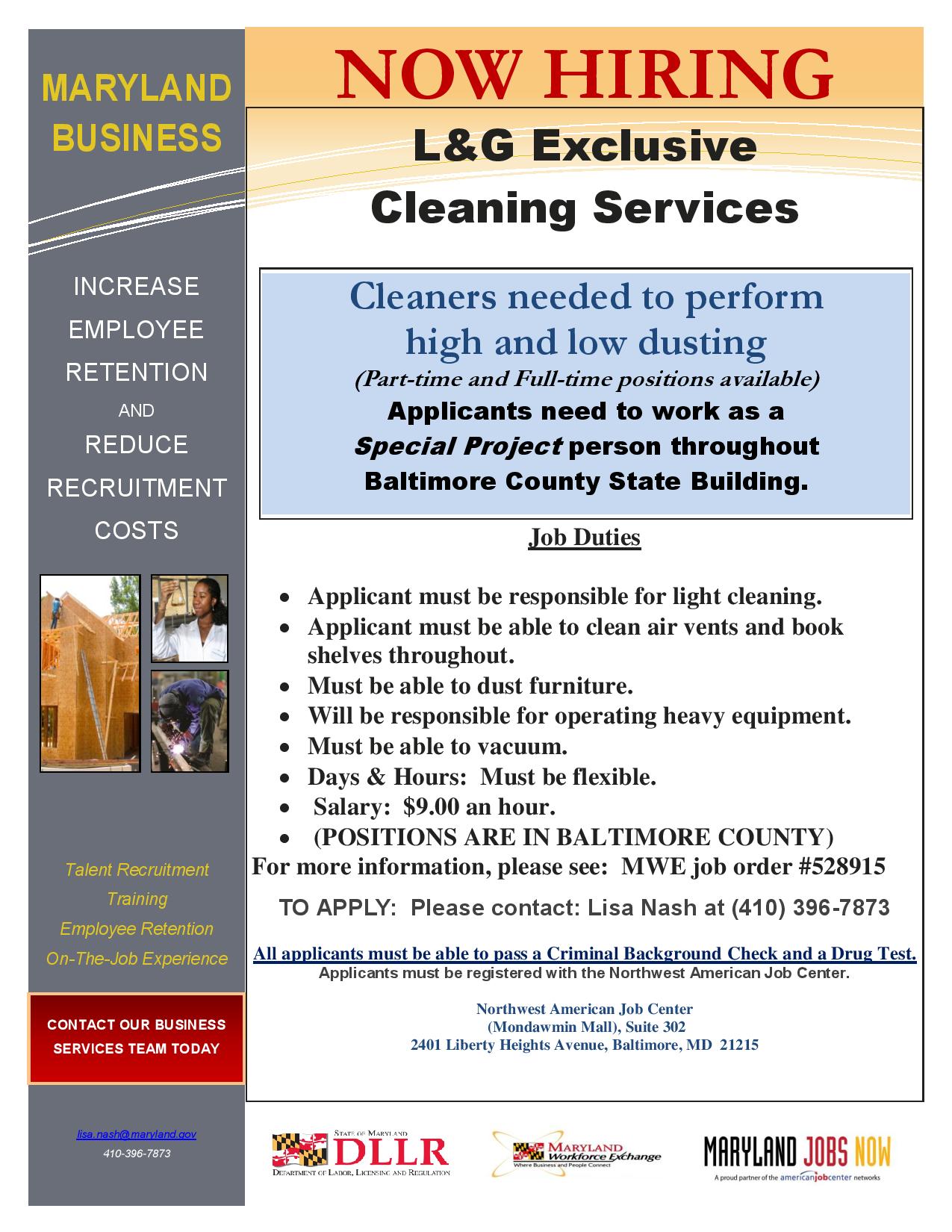 Baltimore Jobs Resources Moed On Twitter Now Hiring Cleaners Janitors And Floor Technicians Https T Co Uj3tuuuopx Twitter